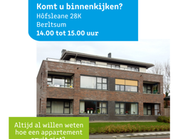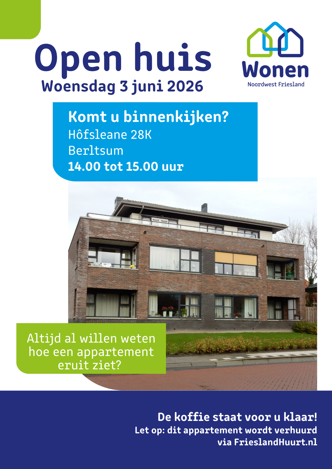 Op woensdag 3 juni bent u van harte welkom om eens binnen te kijken bij de Hôfsleane 28K in Berltsum. Het Open Huis is van 14.00 tot 15.00 uur.