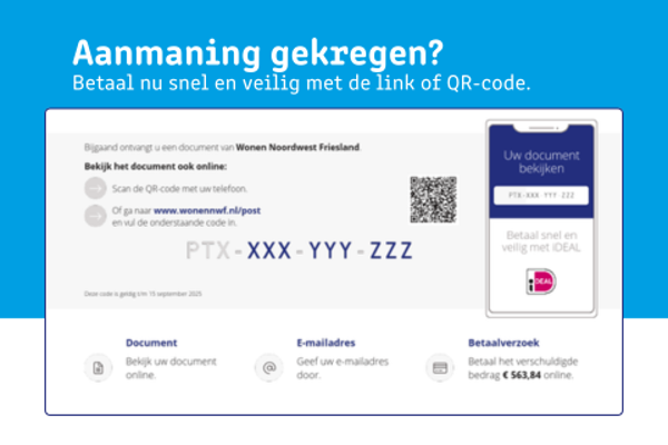 Vanaf nu is het mogelijk om bij een aanmaning direct te betalen. Dit kunt u doen door de QR-code te scannen of op de link te klikken. Met deze nieuwe betaalwijze, maken wij het voor u makkelijker.